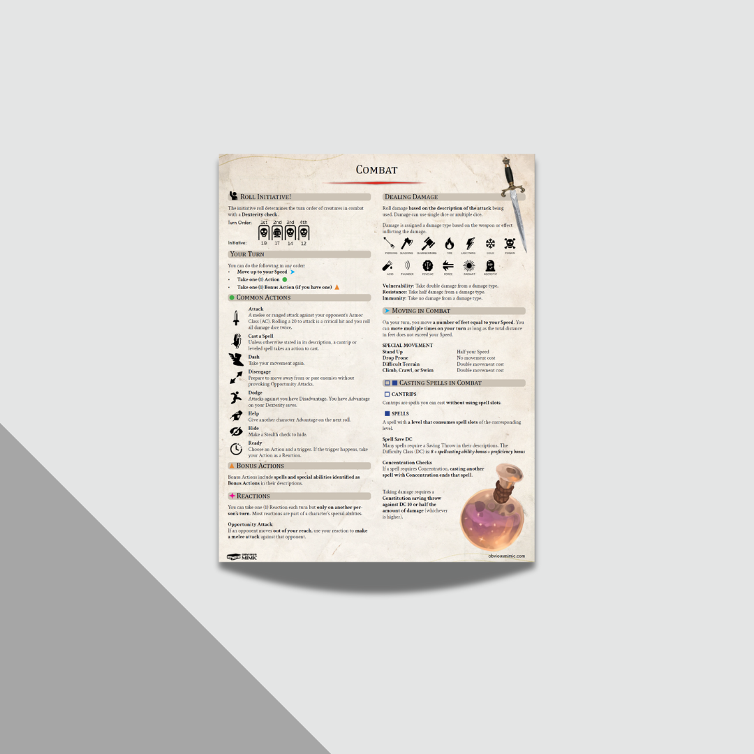 ✔️A clean 2-page reference for the most important rules in Dungeons and Dragons 5th Edition.