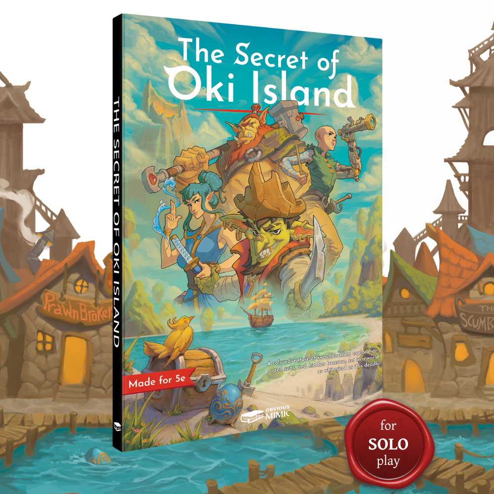 The Secret of Oki Island is a 5e solo adventure of swashbuckling action, open seas, and hidden treasure set in a world as whimsical as it is deadly.