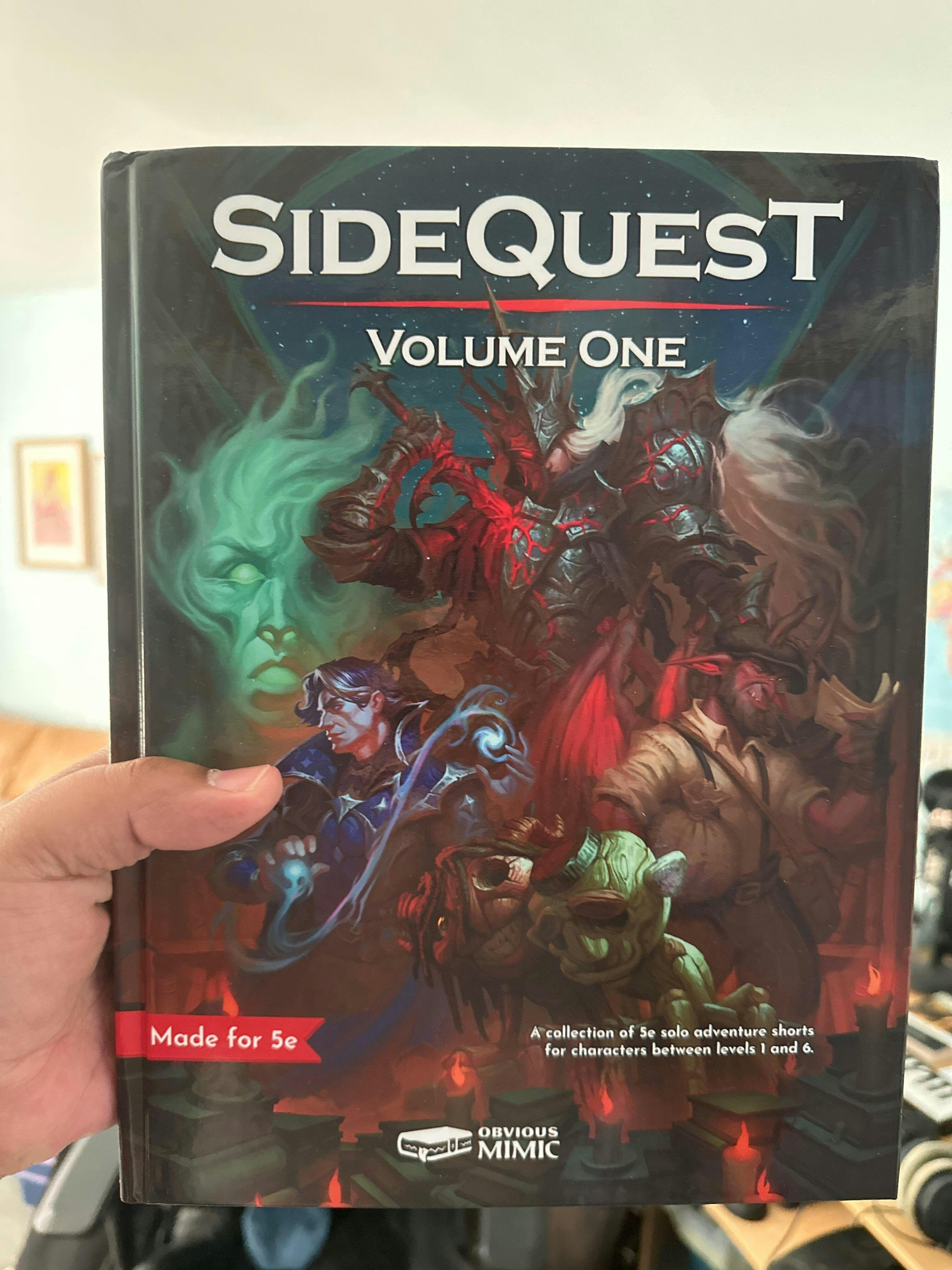 SideQuest: Volume 1 is a collection of eleven solo adventure shorts made for 5e characters between levels 1 and 6.
